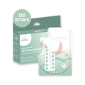 1× verpakking met 120 of 200 stuks moedermelk bewaarzakjes met dubbele sluiting en schenktuit.